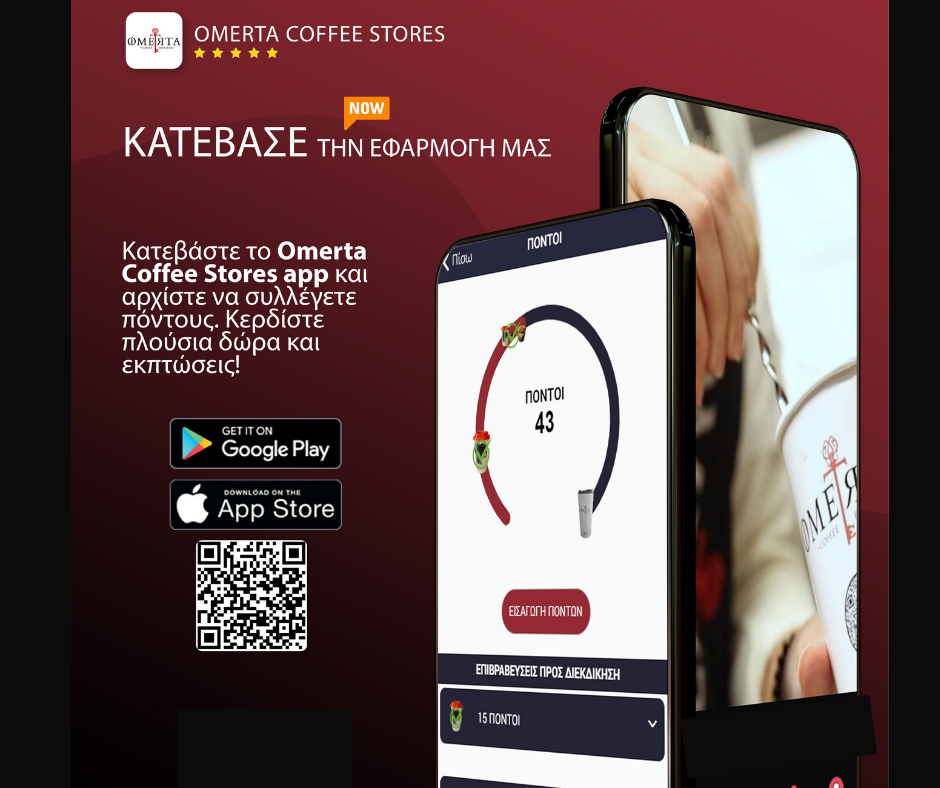 Κατεβάστε την εφαρμογή omerta coffee stores app και αρχίστε να συλλέγετε πόντους.
